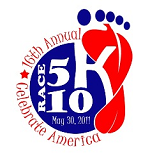 For Memorial Day, we ran the Celebrate America race at Alpharetta's Northpoint Mall. This 16th annual event was well organized and equipped, making for a smooth race of nearly 900 runners. The course was pleasant - a loop on tree-lined streets around the mall area, with a few rolling hills. The 10K was a double loop, which provided an extra benefit for me: I was able to watch Lydia cross the 5K finish line as I started my second time around. Lydia won her age group in the 5K at 25:00; my 10K time was 53:02.