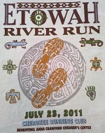 The annual Etowah Swelter River Run balances the benefit of a fast course with the challenge of late July heat. This year, like last, was certainly no exception: race time weather was at 77 degrees with 91% humidity, but that was offset by the signature opening downhill run and flat-as-a-pancake route. This was the third year running it for Lydia and me; she finished first in her age group at 25:06, while I came in at 24:23.